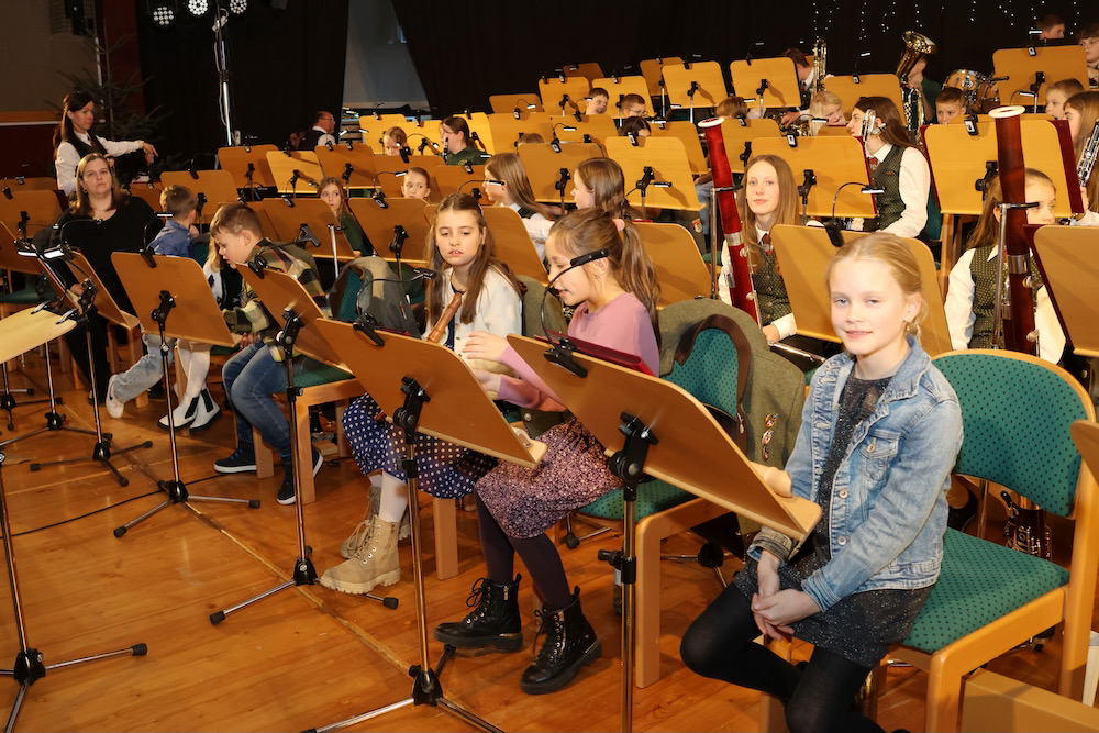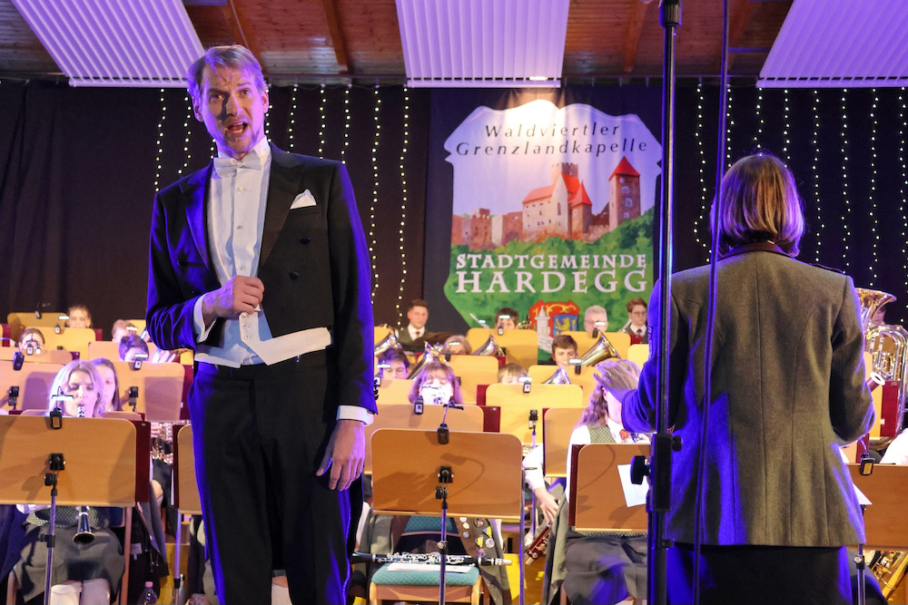 90 MusikerInnen auf der Bühne, dazu 43 JungmusikerInnen des Jugendorchesters „HaWei“ (Hardegg-Weitersfeld) samt 8 Blockflötenkindern des Musikschulverbandes Retzer Land sowie weitere musikalische Gäste wie der erfolgreiche Tenor Martin Mairinger aus Kleinriedenthal und der Komponist Gerald Oswald aus der Steiermark bereicherten das abwechslungsreiche Konzertprogramm.