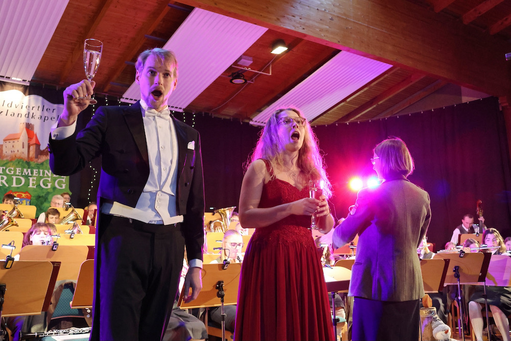Mit den „Highlights from Wicked“ entführte Kpm.-Stv. Karoline Schöbinger-Muck in die Welt der Hexen von Oz, dem aktuellen Musicalhit von Stephen Schwartz am Broadway und den heimischen Kinos. Bei „Purple Rain“ von Prince berührte Selina Pausackerl erneut mit ihrem Gesangstalent das Publikum, ehe mit „Frank Sinatra Classics“ noch Jazz- und Swing-Musik erklang. Mit der Polka „Bei uns daheim“ von Kurt Gäble unter der Leitung von Birgit Mahr-Schadn und dem traditionellen „Radetzky-Marsch“ von Johann Strauss (Vater) ging das gelungene Konzert traditionell zu Ende.
