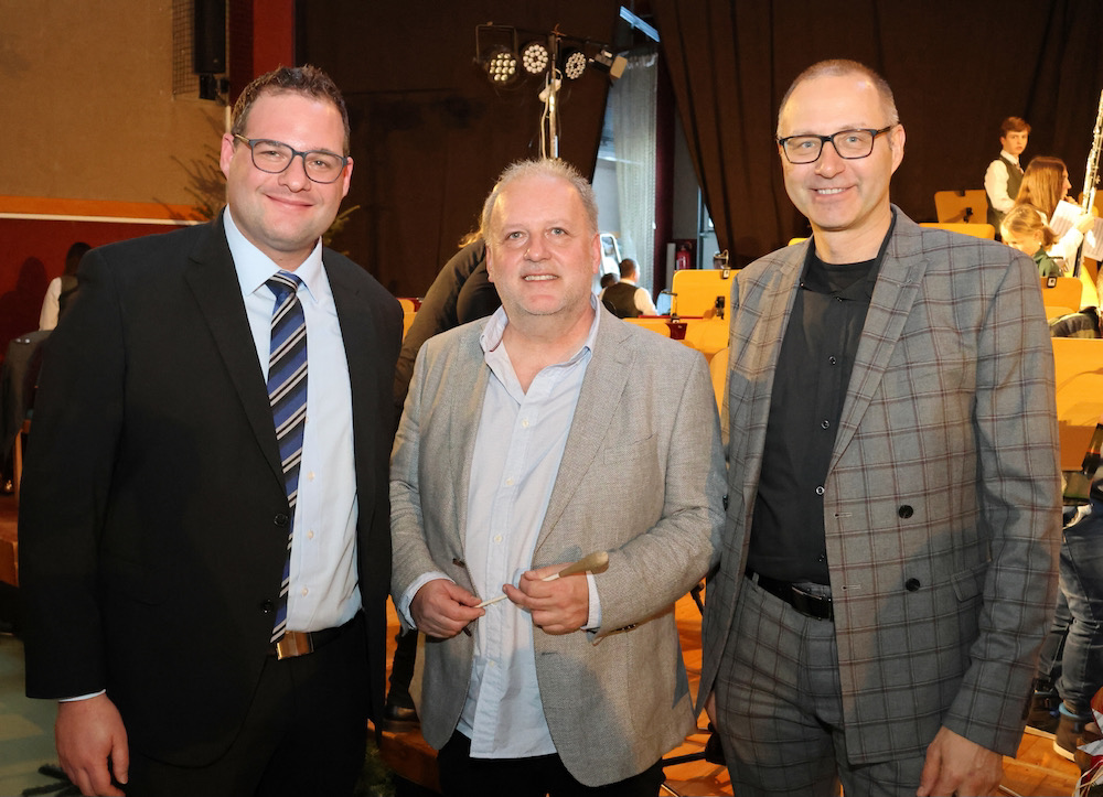 Nach der Pause setzte das Jugendorchesters „HaWei“ samt Blockflötenkindern des Musikschulverbandes Retzer Land ein starkes Zeichen für die Jugend: Erstmals musizieren über 40 SchülerInnen im aktuellen Schuljahr im Nachwuchsorchester der beiden Gemeinden Hardegg & Weitersfeld, was auch die gute Zusammenarbeit über die Grenzen hinweg betont. Unter der Leitung ihres Musiklehrers Johann Pausackerl und dem Gastdirigat von Gerald Oswald erklangen deren Eigenkompositionen „Im Königspalast“ bzw. „Emerald Fantasy“ mit Unterstützung der Blockflötenlehrerinnen Susanne Kohl und Karoline Schöbinger-Muck. Mit der Zugabe „Star Wars“ erfreuten sie nicht nur Eltern & Angehörige, sondern auch Musikschuldirektor Gerhard Forman und Verbandsobmann Stefan Lang.