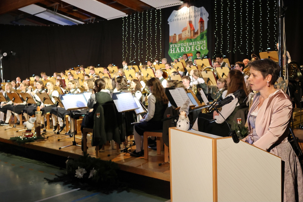 Zahlreiche Ehrengästen aus der heimischen Politik-, Kultur- und Blasmusikszene sowie an die 700 ZuhörerInnen versammelten sich zum traditionellen Neujahrskonzert der Grenzlandkapelle Hardegg: Neben Landtagsabgeordnetem Richard Hogl und den Bürgermeistern Friedrich Schechtner (Hardegg) und Daniel Mayerhofer (Langau) waren auch dessen Vorgänger LAbg. Franz Linsbauer sowie die beiden Präsidenten bzw. ehemalige Bürgermeister Norbert Kellner und Heribert Donnerbauer zu Gast. Vom Blasmusikverband konnten Landeskpm. und Musikschuldirektor Gerhard Forman sowie die Landeskpm.-Stv. Thomas Asanger (Oberösterreich), Daniel Muck (Wien) und Gerald Oswald (Steiermark) begrüßt werden. Durch’s Programm führte erneut Sonja Burghard.